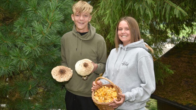 „Sogar hinter unserem Haus wachsen die Parasolpilze schon“, freuen sich die Geschwister Mario und Lea aus St. Michael. Die beiden Lungauer ziehen mit ihrem Vater derzeit besonders gerne zum Schwammerlsuchen los. „Wir finden einfach immer was – vor allem viele Eierschwammerl und Steinpilze“, sagen die beiden unisono.