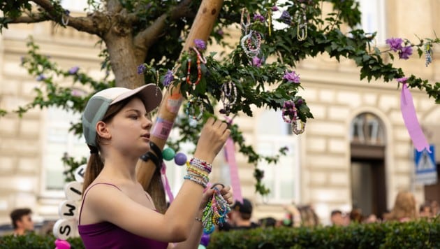 Und genau dort wurde am Freitag um 16 Uhr eine Gedenkplakette – finanziert vom Bezirk – gegenüber dem Freundschaftsbaum, der mit Swift-typischen Bändchen versehen wurde, enthüllt. Um an die überraschende Absage der Konzerte, aber auch den ungebrochenen Zusammenhalt der Fans in den Tagen danach, zu erinnern. Für Bezirksvorsteher Markus Rumelhart (SPÖ) steht die Gedenktafel ganz im Zeichen des Bezirksmottos: „Miteinander in Mariahilf“.