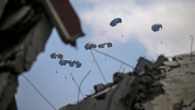Tragödie im von Hunger und Chaos geprägten Gazastreifen: Ein 14-jähriges Kind wurde nach palästinensischen Angaben von Hilfsgütern erschlagen, die per Flugzeug abgeworfen wurden.