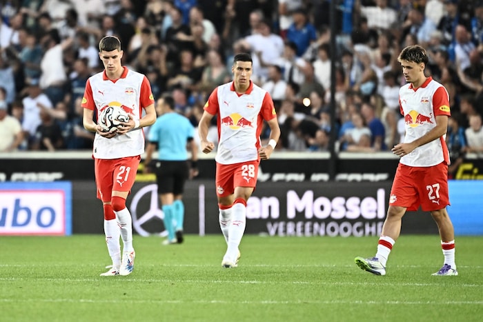 Jacob Rasmussen mit seinem ersten Treffer für Salzburg (18.) und Edmund Baidoo (43.) brachten die an diesem Abend effiziente Elf von Thomas Letsch dem Playoff-Duell mit den Glasgow Rangers schon sehr nahe. Joaquin Seys (61.), Carlos Forbs (83.) und Hans Vanaken (94.) belohnten aber schließlich die Bemühungen der über weite Phasen etwas besseren Belgier.