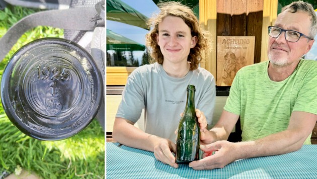 Eigentlich wollte die Urlauberfamilie Gelpke in der Tiroler Leutasch nur Pilze suchen. Dabei machte das Trio einen Sensationsfund: Unweit der Rauthhütte (1605 Meter) am Ostfuß der Hohen Munde befand sich im Erdreich eine im Jahr 1925 (!) hergestellte Bierflasche.