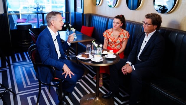 Österreichs Unternehmer haben eine lange Wunschliste an die Regierung. Sacher-Chef Matthias Winkler hat sie im dritten Teil der „Krone“-Serie „Das andere Sommergespräch“ an Wirtschaftsminister Wolfgang Hattmansdorfer herangetragen. Man tauschte aber nicht nur Argumente aus, sondern auch Torten.
