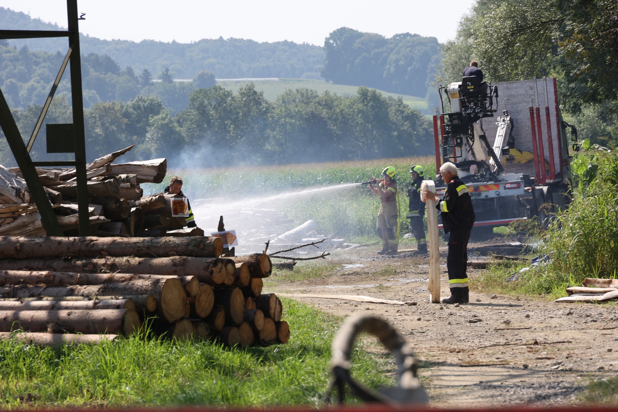 30 Einsatzkräfte waren mit dem Löschen des in Vollbrand stehenden Holzhaufens beschäftigt. Einsatzleiter Günther Ertl von der Feuerwehr Buch-Geiseldorf erklärte im Gespräch mit der „Krone“: „Eine Wanderin hat das Feuer entdeckt und die Feuerwehr gerufen. Beim Eintreffen der Einsatzkräfte stand bereits der gesamte Haufen in Vollbrand. Eine besondere Gefahr stellte die Hochspannungsleitung dar. Sie musste zumindest zur Hälfte abgeschaltet werden, bevor wir mit den Löscharbeiten beginnen konnten.“ Das dafür benötigte Wasser bezogen die Florianis aus einem 14.000 Liter Wassertank der Feuerwehr Pöllau und der Safen, einem nahegelegenen Bach.