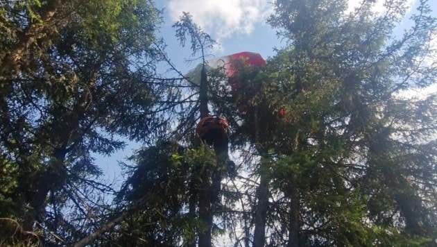 Der Sportler konnte sogar selbst vom Baum absteigen. Bergretter bargen dann noch den Schirm und den Notschirm. Auch Einsatzkräfte der Polizei Bischofshofen waren beim Einsatz dabei.
