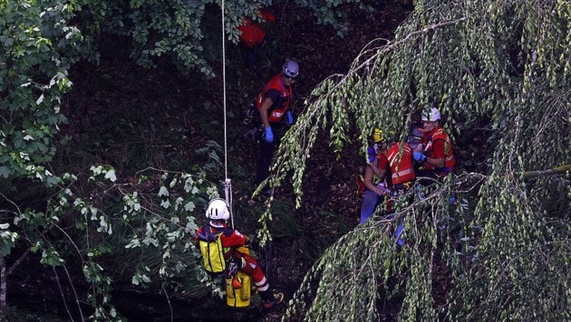 Sie konnte selbst noch den Notruf wählen, doch die Suche gestaltete sich schwierig: Dichte Vegetation und schwer einsehbare Steilhänge verhinderten eine rasche Ortung.