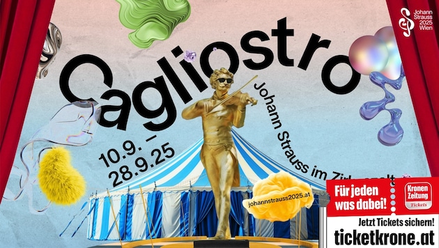 Am 14. September lädt die „Krone“ zum Familiennachmittag bei Cagliostro – Johann Strauss im Zirkuszelt ein und Sie können live dabei sein. Wir verlosen 60 Tickets der Kategorie A für die Aufführung inkl. einem Meet & Greet mit den Stars des Zirkus nach der Vorstellung sowie einer Johann Strauss Ente.
