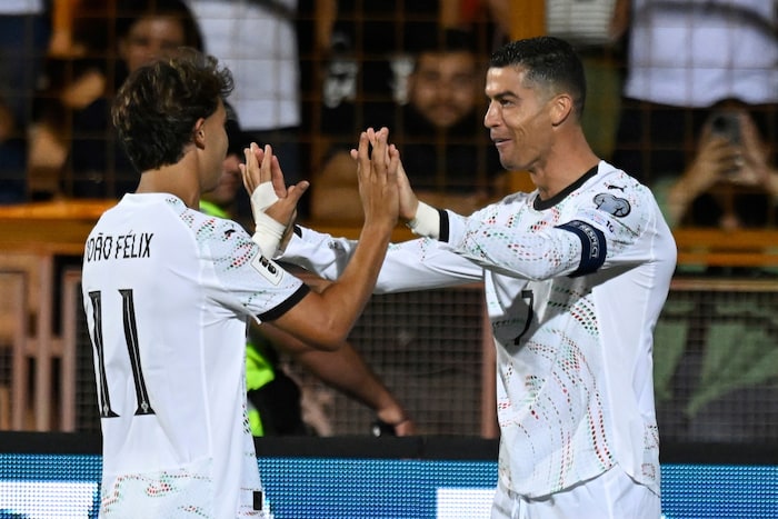 Nach dem 3:0 von Joao Cancelo (32.) traf Ronaldo gleich nach der Pause aus 20 Metern (46.), nach 57 Minuten ging der Superstar zufrieden vom Platz. In der 62. Minute schnürte auch Joao Felix mit der Ferse seinen Doppelpack.