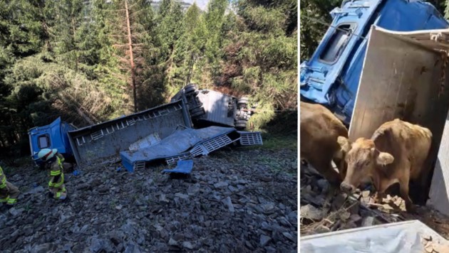 Dramatisch gestaltete sich die Bergung der Rinder, die überlebt haben. Der Großteil davon habe sich noch in den Ladebereichen befunden, einige seien herausgeschleudert worden, berichtet die Polizei. Die Einsatzkräfte mussten das Lkw-Wrack im Steilhang erst absichern, bevor man sich der Tierrettung widmen konnte. Die Bergungsarbeiten dauerten bis in die Abendstunden.