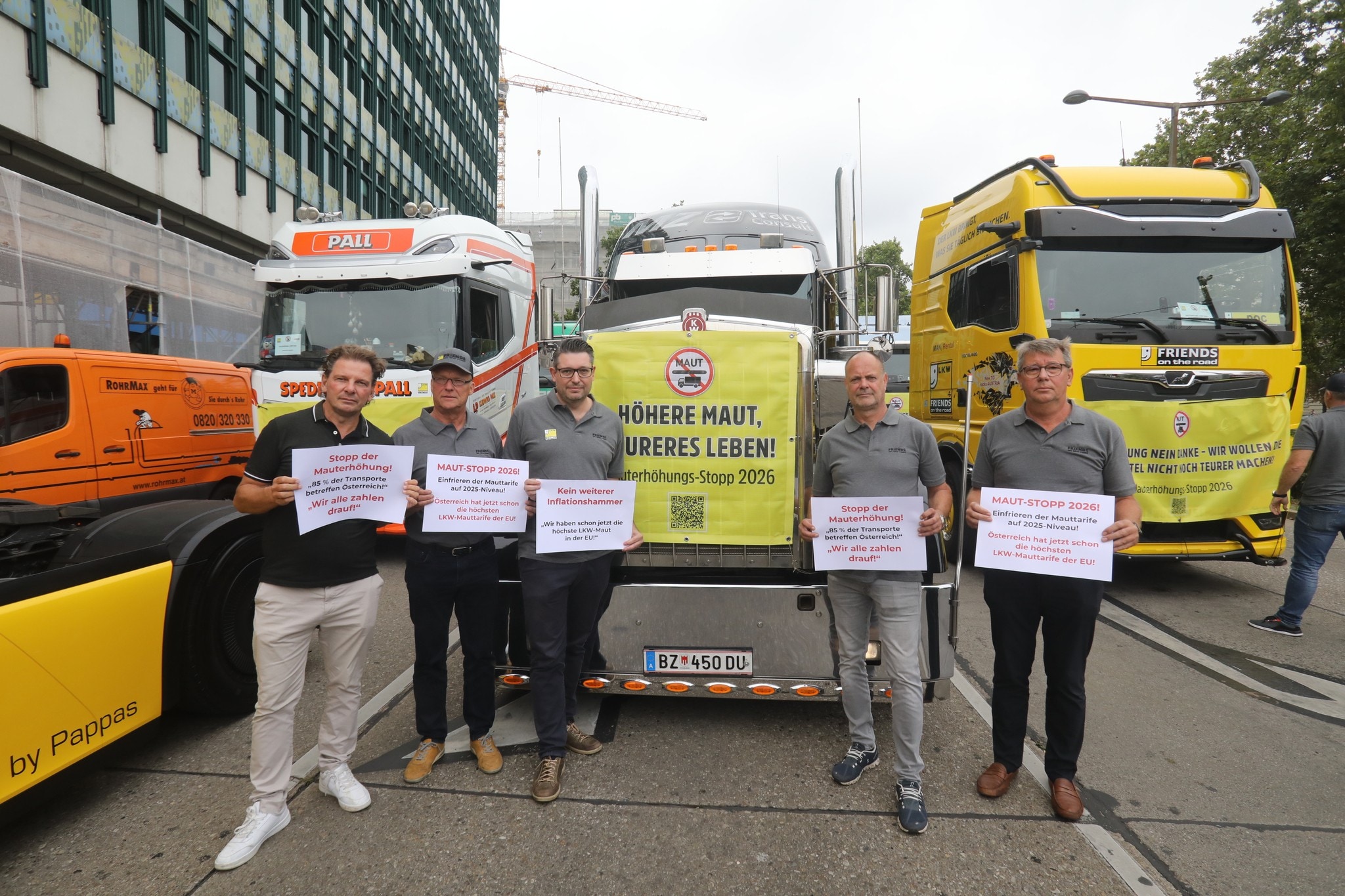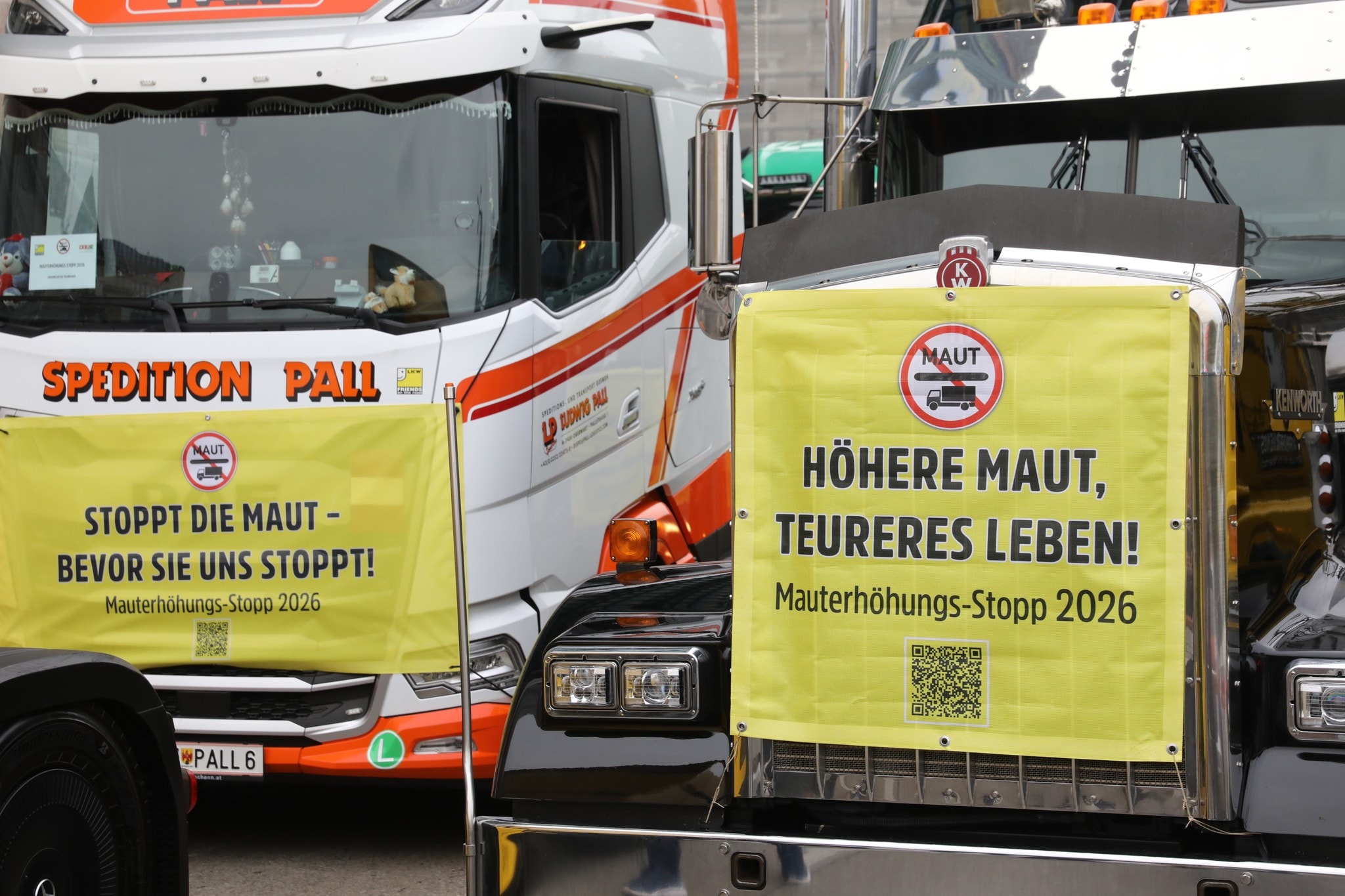 Der Tenor des Protests ist eindeutig: Wird der Transport teurer, wird es für die Konsumenten im Geschäft kostspieliger. Die geplante Erhöhung der Lkw-Maut auf Autobahnen und Schnellstraßen sorgt seit Wochen für Protest der Frächter, am heutigen Mittwoch wird der Ärger öffentlich gemacht.