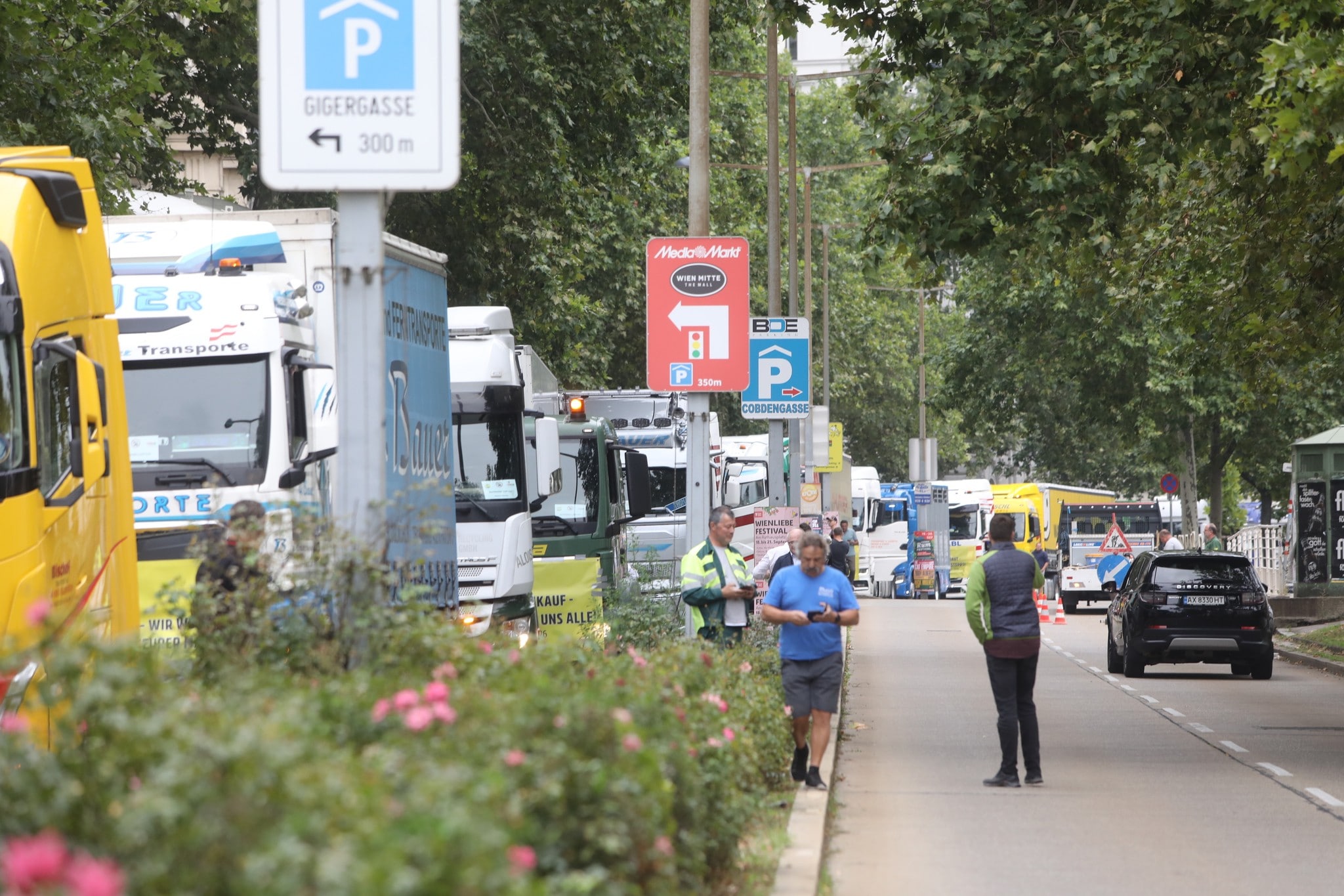 Am Gürtel verwendeten die Lkws alle drei Fahrstreifen: Der Verkehr kam bei der vorderen Zollamtsstraße bis zum Schwarzenbergplatz mit einer Verzögerung von rund 20 Minuten ins Stocken. Bei der Westeinfahrt kam es lediglich zu geringfügigen Behinderungen. Ab 11 Uhr löste sich die Demo langsam wieder auf.