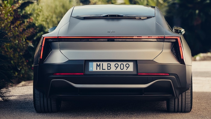 Optisch orientiert sich der fünf Meter lange Viertürer mit der großen Fließheck-Klappe an der 2020 gezeigten Studie Precept. Besonders auffällig: Eine Heckscheibe gibt es nicht, stattdessen spannt sich ein imposantes Glasdach über das komplette Passagierabteil, ähnlich wie schon beim Polestar 4. Wie von anderen Modellen der Marke bekannt, setzt auch der Fünfer auf klare Linien, diesmal kombiniert mit einer sportlich zugespitzten Front. Der Kofferraum fällt mit 365 Litern für ein Fahrzeug dieser Größe sehr klein aus, zusätzlich stehen im Frunk unter der Fronthaube 62 Liter zur Verfügung.