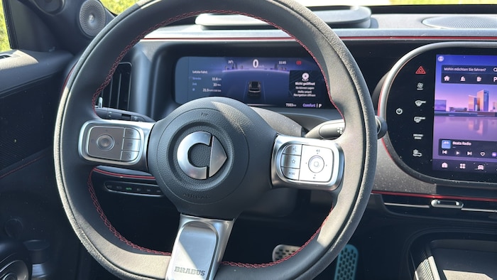 Was den Spaß bremst: die Bedienung. Smart steckt beim #5 noch mitten in der Software-Pubertät. Die Navigation sucht sich oft einen Wolf, merkt sich keine Ziele, übernimmt Tempolimits unzuverlässig und setzt beim Neustart mehr Assistenten auf Standard zurück, als das bei anderen Fabrikaten üblich ist. Selbst für die Spiegelverstellung braucht man den Touchscreen. Zwar sollen Updates vieles bald verbessern, doch Stand jetzt nervt das. Und: Bis 150 km/h regelt der Tempomat, schneller nicht – eigenartig für ein Auto, das 210 km/h rennt.