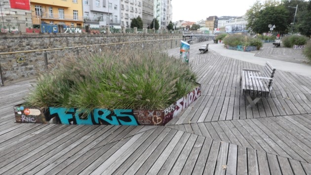 Heute zeigt sich das Areal eher als missglücktes Kunstprojekt, denn als Wohlfühloase. Von den Sitzbänken, über die Mistkübel und sogar der Holzboden – kaum ein Zentimeter, der nicht mit Graffitis besprüht ist. Insgesamt fristet die Wiental-Terrasse zu ihrem 10-jährigen Jubiläum ein eher trauriges Dasein.