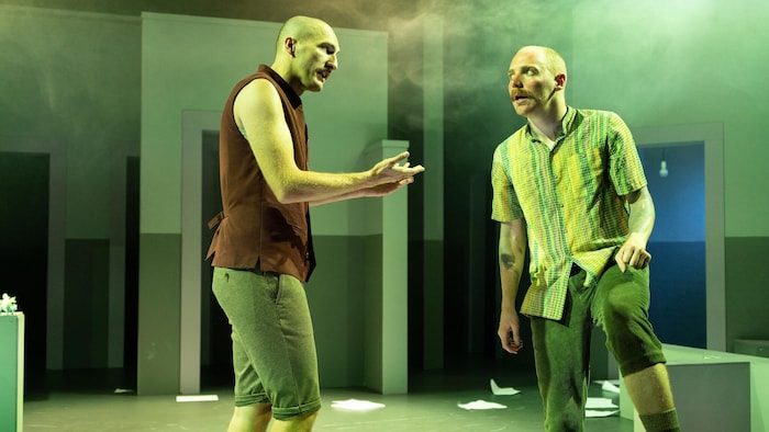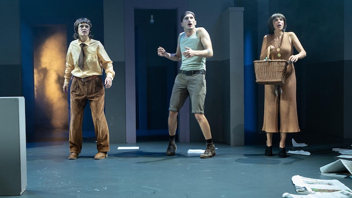 Karina Pele hat eine Hosenrolle und tritt als Dudard mit gemäßigter, letztlich aber konformistischer Haltung auf. Martin Brunnemann und Sebastian Pass runden das Ensemble in Doppelrollen ab.