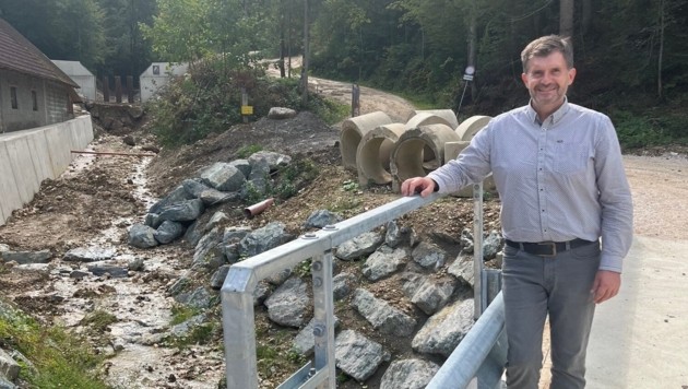 In wenigen Wochen wird er, gemeinsam mit dem Gallizianer Gemeinde-Chef, Hannes Mak, die Vellach-Brücke in Müllnern wiedereröffnen. Diese hatte das Wasser damals einfach mitgerissen. Kilometerweite Umwege mussten ansässige Landwirte seither auf sich nehmen. Stolze 910.000 Euro hat der Neubau gekostet. Trotzdem nur ein Bruchteil von dem, was seit 2023 von Bund, Land und Gemeinden in den Wiederaufbau investiert wurde: Der Eichenweg in St. Kanzian erstrahlt in neuem Glanz, in Kühnsdorf wurde gerade im Ortskern unweit der Schule ein Hochwasserschutzprojekt fertiggestellt. In Sittersdorf flossen knapp eine Million Euro in Maßnahmen rund um den Suchabach bei Altendorf. Nach schlimmen Hangrutschen in Völkermarkt wurden ganze Siedlungen abgesichert.