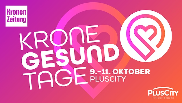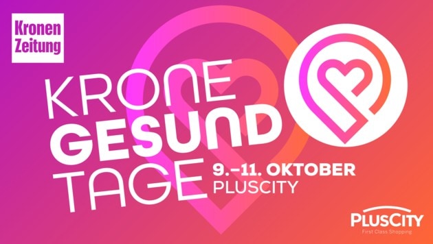 Mit viel buntem Programm und einer neuen Aktion startet die „Krone“ mit ihren Gesund-Tagen in der PlusCity in Pasching durch. Gleich eintragen und hinkommen: 9. bis 11. Oktober. Der Eintritt ist natürlich frei!