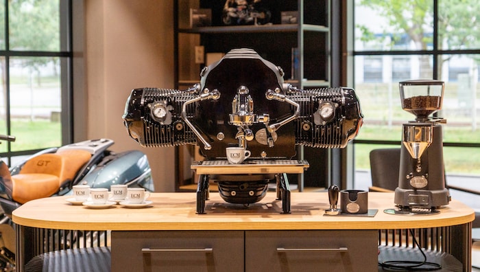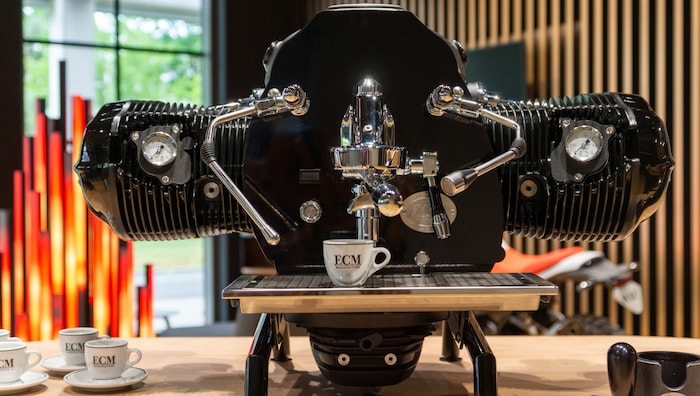 BMW Motorrad hat den größten Zweizylinder seiner Geschichte genommen und zur Siebträgermaschine veredelt. Der Boxer, Symbol für Beschleunigung, Abenteuer und Fernweh, serviert jetzt Espresso und Cappuccino. 80 Stück gibt es davon. Mehr nicht. So wie bei Oldtimern, wo die Zahl klein sein muss, damit die Geschichte groß wird.