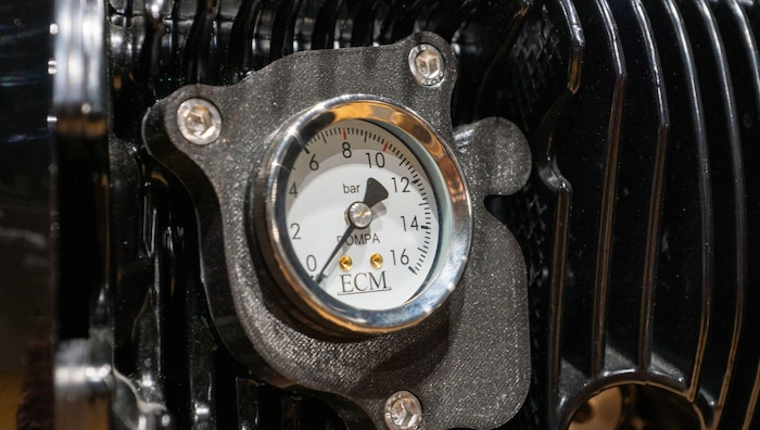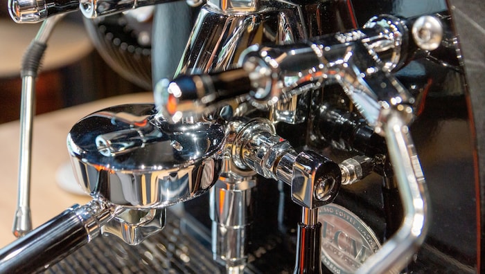Alles vom Feinsten also. Dazu der Boxer-Motor als Skulptur, die Tropfschale scheinbar schwebend, die Rippen glänzend. Ein Kunstobjekt, das Koffein spendet.