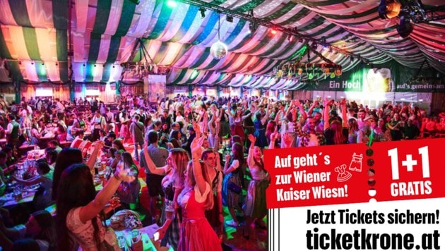 Egal ob Familie, Volksmusikfan oder Party-Liebhaber – die Wiener Kaiser Wiesn bietet für jede Stimmung das passende Feeling. Noch bis morgen 23. September gibt es exklusiv im Krone Ticketshop beim Kauf eines Tickets ein zweites gratis dazu!