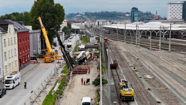 Aufregung in der Nähe des Salzburger Hauptbahnhofs! Am Montagnachmittag rutschte auf einer Baustelle in der Lastenstraße eine mehrere Tonnen schwere Maschine in einen Graben.