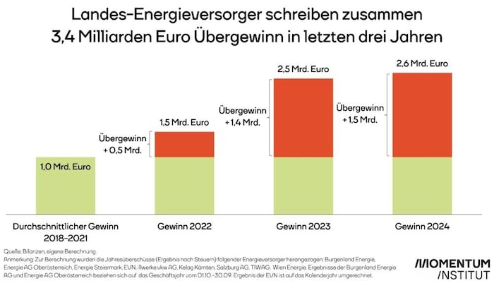 Für Kritik sorgt auch die Gewinnsituation: Laut Momentum Institut konnte die KELAG gegenüber den Vorkrisenjahren um 297 Prozent steigern, die Energie Steiermark verbuchte eine Gewinnsteigerung von 167 Prozent.