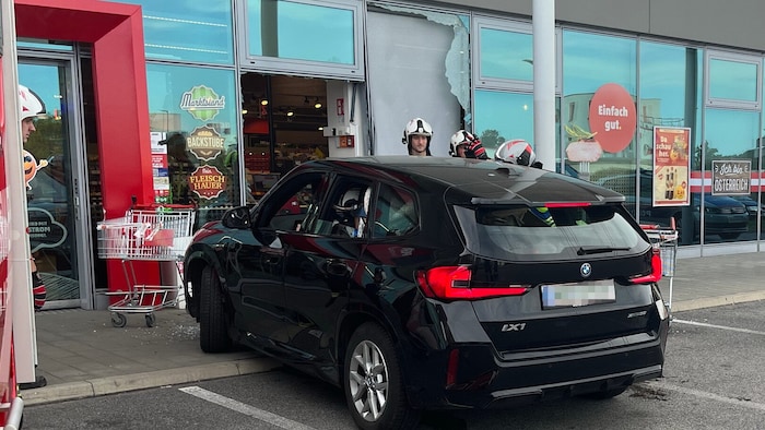 Noch inmitten des abendlichen Einkaufs ließ das Geräusch zersplitterndes Glases die Kunden im Supermarkt erschrecken. Ein Elektroauto war gegen die Auslage gefahren und hatte nicht nur diese, sondern auch die in diesem Bereich aufgestellten Waren beschädigt.