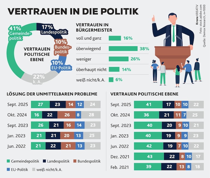 Besonders brisant: Im Vergleich zur Erhebung im Vorjahr haben die Bundes- und Landespolitik sogar noch einmal an Vertrauen verloren. Ein weiteres Warnzeichen für die Regierungsspitzen. Im Gemeindebund sieht man es als Auftrag, den Reformprozess weiter aktiv mitzugestalten.