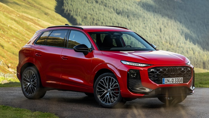 Auch in der dritten Generation gibt es den Audi Q3 als SUV und als Sportback, also als SUV mit Coupé-artiger Dachlinie. An Front und Heck unterscheiden sich die beiden Versionen praktisch nicht, beide haben in der S-Line die gleiche Aggressivität hineingezeichnet bekommen, die sich je nach Wunsch in Silber oder Schwarz variieren lässt. Die Karosserieflanken sind die Schokoladenseite des Q3, fließend geformt, bullig-muskulös über den Hinterrädern (Größe von 17 bis 20 Zoll). Was die Seitenansicht auch interessant macht, beschreibt das Audi-Marketing so: „Die obere Seite fängt das Licht und die untere Seite den Schatten.“