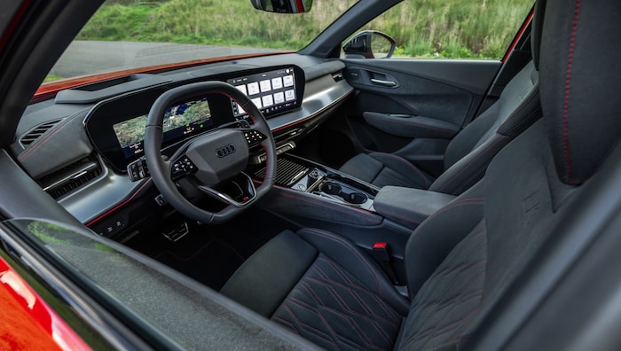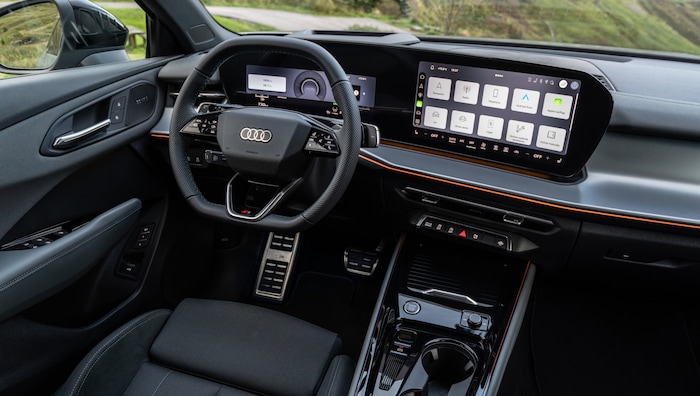 Der Innenraum wirkt hochwertig und bietet teils auch schöne Materialien. Leider auch das beinahe obligatorische Klavierlackplastik. Ein großes Doppeldisplay dominiert den Innenraum, der Touchscreen ist gut erreichbar, eine Kante davor erleichtert das Tippen. In der Übersicht findet man neu gestaltete, große Kacheln mit Symbolen und Beschriftung, die gut zu erkennen sind. Nach dem Q3 werden sie auch in die Bediensysteme der anderen einziehen.