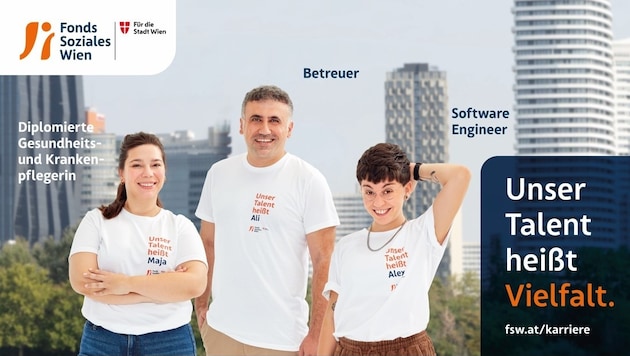 Vielfalt ist beim Fonds Soziales Wien (FSW) kein Schlagwort, sondern gelebte Haltung. Hier arbeiten Menschen mit unterschiedlichen Qualifikationen, Erfahrungen und Ideen gemeinsam daran, dass es anderen Menschen besser geht. Und genau das stärkt die Stadt Wien.