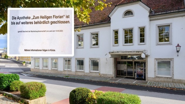 Seit Mitte Juni ist die Apotheke in St. Florian bei Linz zu – „behördlich geschlossen“ ist auf der Eingangstür des Hauses in der Wienerstraße zu lesen. Die Inhaberin der Konzession hat sich von ihrem Geschäftsführer getrennt, wollte danach die Apotheke wieder selbst übernehmen. Da die Frau unter Erwachsenenvertretung steht, sah sich die Bezirkshauptmannschaft Linz-Land gezwungen, die Apotheke vorübergehend zu schließen.