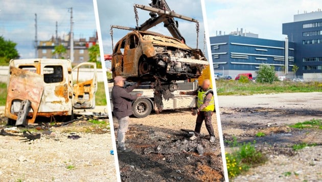 Als die „Krone“ einen Blick in den Park warf, wurde noch ein ganz anderes Problem offensichtlich. In einem offenkundig noch nicht ganz fertig gestellten Teil der Parkanlage standen neben mehreren völlig zerstörten Autos, deren Scheiben eingeschlagen waren, auch ein ausgebrannter Kleinbus und das abgefackelte Gerippe eines Transporters. Wie die Wracks dort hinkamen, wurde auf erste Anfragen nicht verraten.