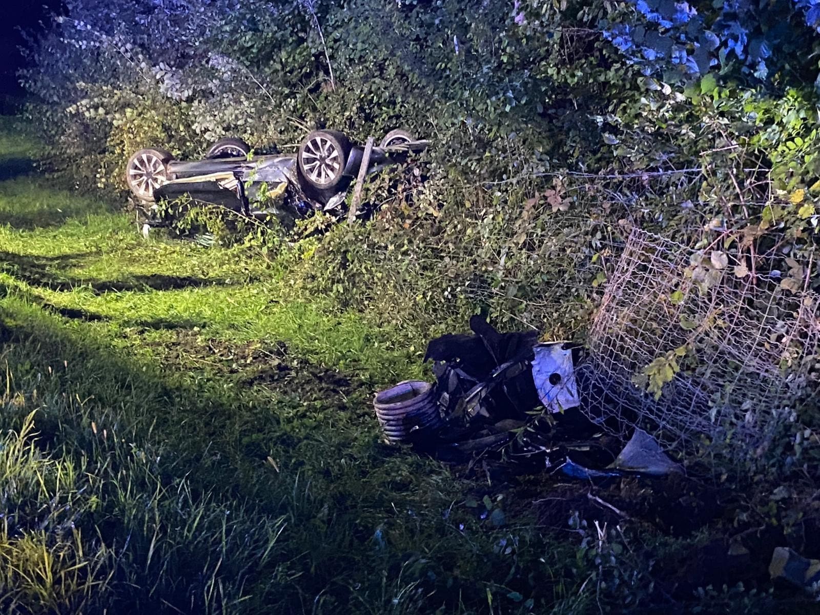 Mitten in der Nacht – um 3 Uhr am Donnerstag – wurde eine Polizeistreife nach einer E-Call-Auslösung zu einem Unfall auf der B50 alarmiert. Vor Ort fanden sie einen Pkw vor, der sich überschlagen hatte und am Dach liegen geblieben war. Zuvor dürfte dieser eine Straßenlaterne, Straßenleitpflöcke, einen Wildzaun und einen Baum touchiert haben.