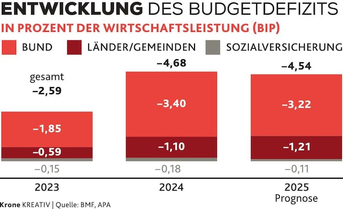 Finanzminister Markus Marterbauer (SPÖ) rechnet mit 23,2 Milliarden Euro minus, hält aber am Defizit-Ziel von 4,5 Prozent für 2025 fest. Hinter den Kulissen brodelt es. Denn trotz der angespannten Situation wollen die Bundesländer mehr Geld.