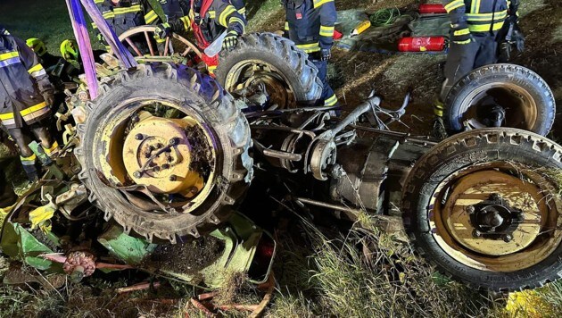 Ein nachkommender 29-jähriger Autolenker aus Münzkirchen bemerkte das Fahrzeug zu spät und es kam zu einem Auffahrunfall. Dabei wurde die Zugmaschine rechts in einen Straßengraben geschleudert und blieb verkehrt liegen. Der 56-Jährige wurde darunter eingeklemmt und musste von der Feuerwehr befreit werden.