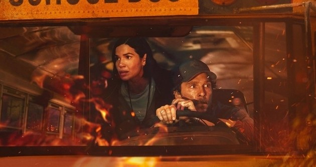 „The Lost Bus“ von Regisseur Paul Greengrass (Jason-Bourne-Filme) heizt sich im wahrsten Sinne des Wortes mit jeder Minute weiter auf. Die Kamera bleibt ganz nah an McConaughey und seinem blendenden Co-Star America Ferrera als Lehrerin Mary dran, wie sie verzweifelt einen Ausweg zu finden versuchen. Die Feuer-Spezialeffekte sind beeindruckend und die Szenen aus der Kommandozentrale der Einsatzkräfte verdeutlichen, mit welcher Geschwindigkeit die Situation außer Kontrolle gerät, trotz der Bemühungen der Einsatzkräfte.