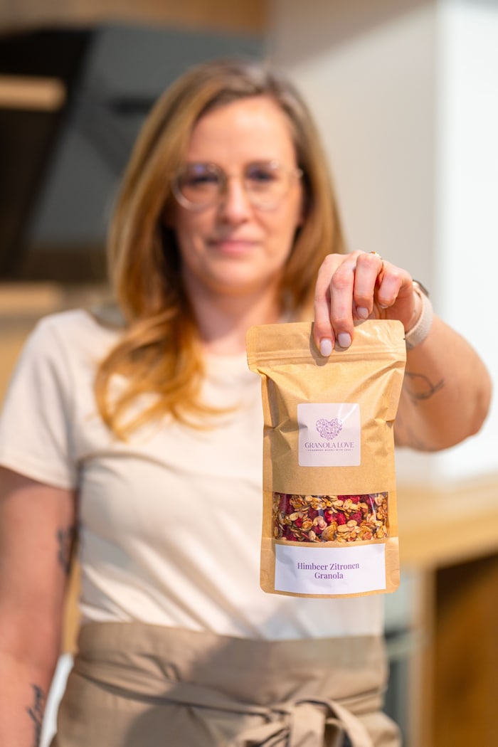 Und so heißt ihr Granola bis heute. Was aber ist das besondere an ihrem Produkt? „Ganz einfach“, erklärt die selbstbewusste, junge Frau. „In jeder Packung steckt Liebe zum Detail, zu natürlichen Zutaten und zum bewussten Genuss“, erklärt sie. Nebenbei ist ihr Müsli auch noch zu 100 Prozent vegan, weil nicht mit Honig gesüßt. Und es ist auch nicht so süß, wie die herkömmlichen Produkte im Supermarkt. Außerdem hat sie Sorten, die man sonst nicht so leicht wo findet. Da gibt es zum Beispielt „Salty Peanut Caramel Granola“ oder auch „Himbeer Zitrone“ und „Herbst Granola.“ Jetzt ganz aktuell im Online-Shop „Spekulatius“.