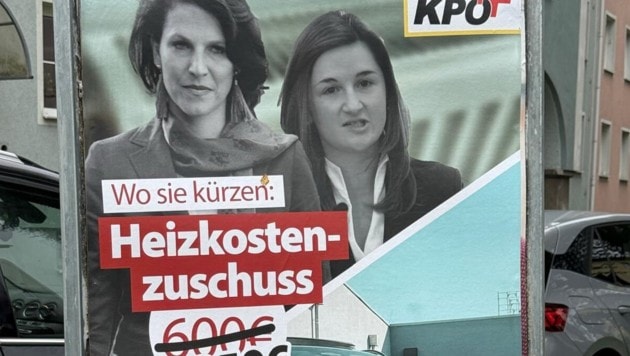 Es steht zwar keine Wahl an, aber die KPÖ reizt die Regierungsparteien mit einer Plakatserie. Diesmal sind darauf abgebildet die schwarze Landeshauptfrau Karoline Edtstadler sowie ihre blaue Vize Marlene Svazek – und ein Sportwagen. Dazu der Spruch: „Wo sie kürzen: Heizkostenzuschuss – Wo sie protzen: Luxus-Dienstwagen.“
