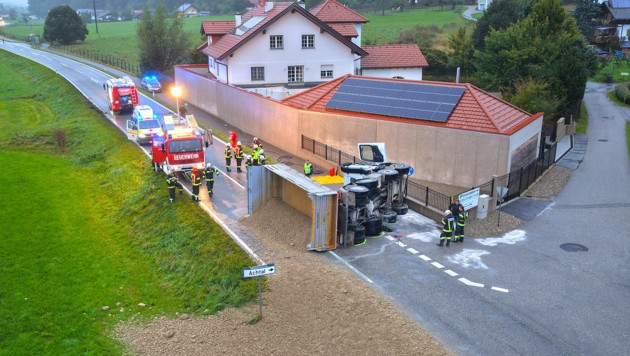Ungewöhnlicher Unfall zwischen Munderfing und Friedburg (OÖ): Ein Lkw kollidierte am Dienstag mit einem Reh, geriet ins Schleudern und kippte um. Die Schotterladung ergoss sich auf die Fahrbahn.