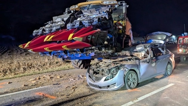 Zwei Schwerverletzte hat am Donnerstagabend ein Zusammenstoß eines Pkw mit einem Mähdrescher in der Südoststeiermark gefordert. Das Auto war ungebremst ins Mähwerk geprallt. Der Lenker des Pkw war betrunken.