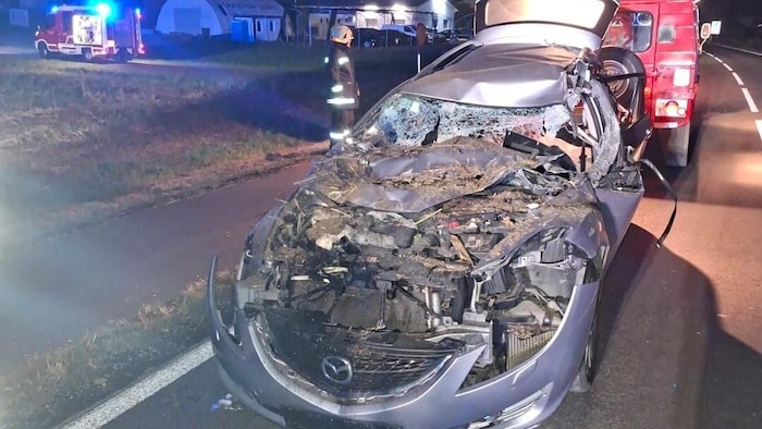 Von den Feuerwehren waren insgesamt 40 Helfer mit sechs Fahrzeugen im Einsatz, dazu Polizei, Rotes Kreuz und Straßenmeisterei.