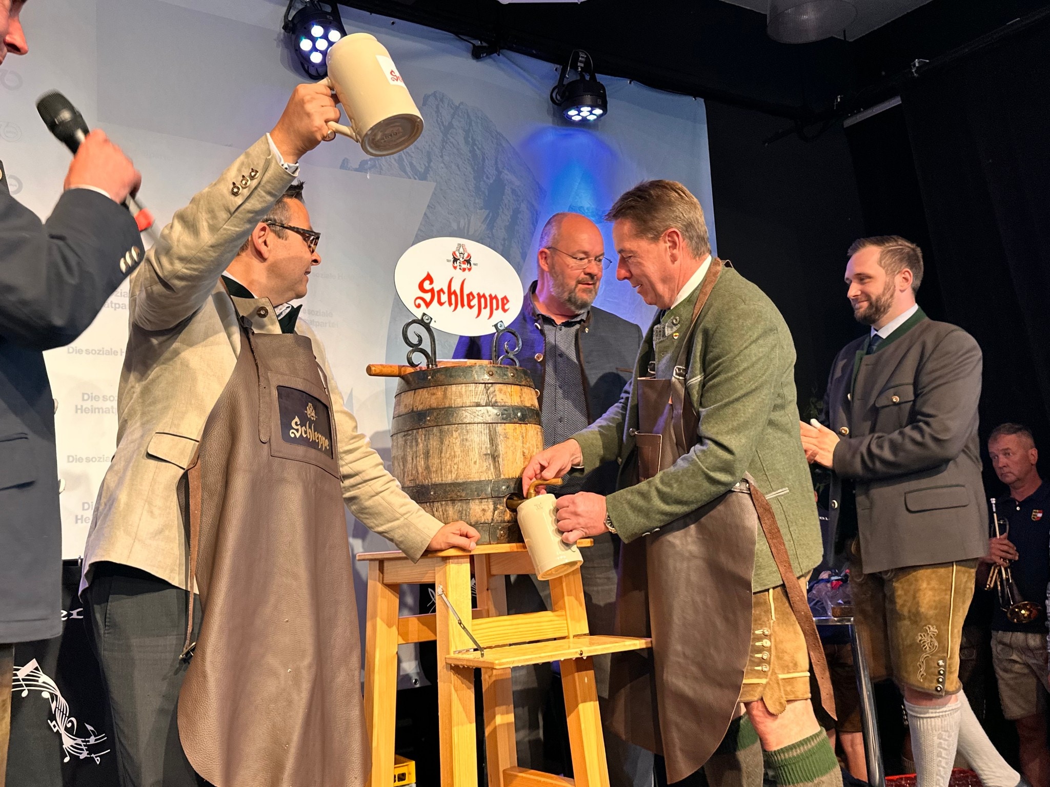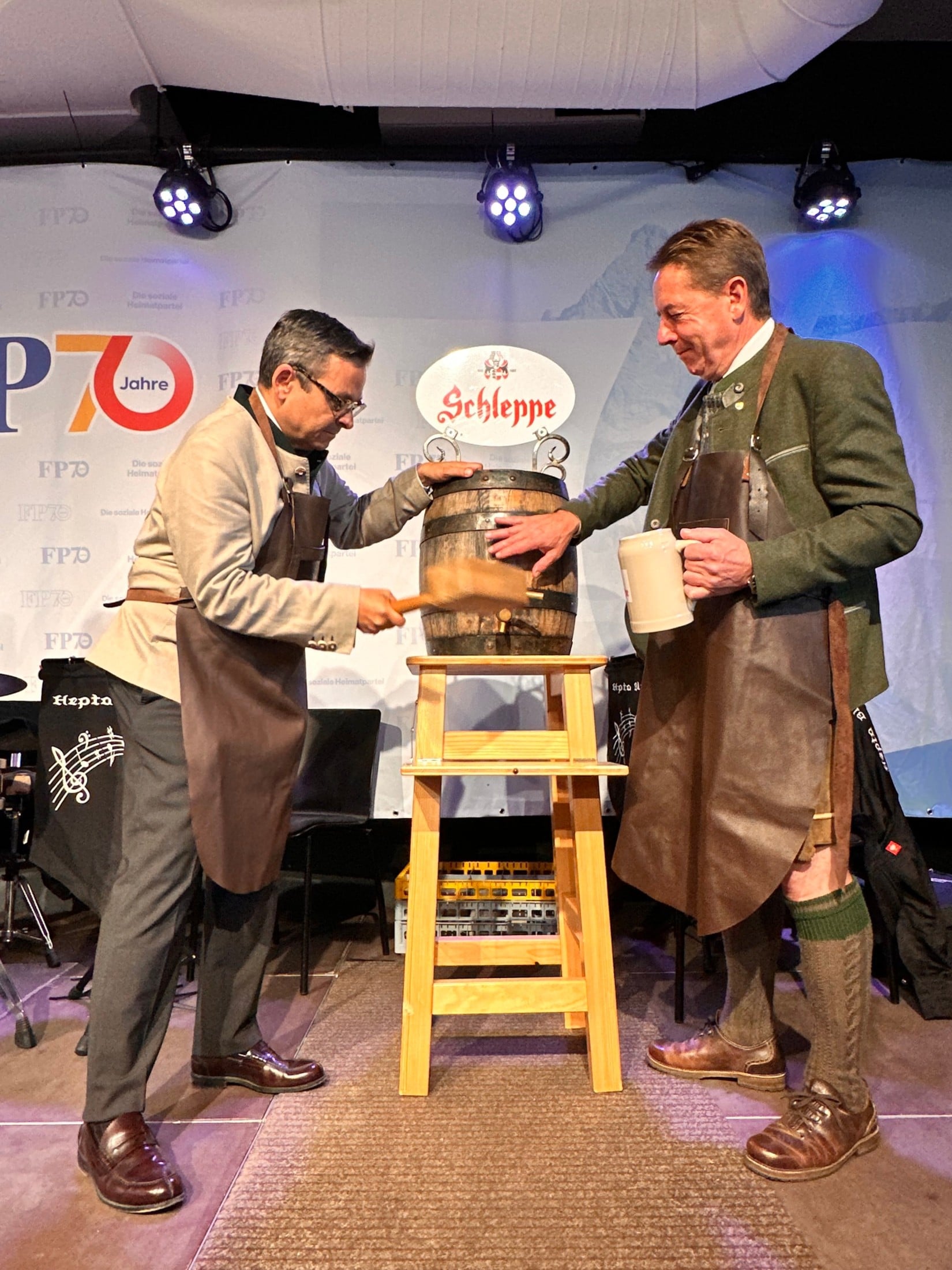 Unterstützung bekam der Mölltaler Bürgermeister auf der Bühne zwar nicht von Bundesparteichef und Kärntner Herbert Kickl – gleichzeitig wurde er für 24. Oktober in Neuhaus und Gmünd angekündigt -, sondern von dem Rechtspopulisten und Ex-BZÖ-Chef Gerald Grosz. In gewohnter, polarisierender Manier teilte der gebürtige Steirer seine Weltansichten, kommentierte aktuelle Geschehnisse – etwa den Freispruch im Fall Anna – und wünschte den Freiheitlichen in Kärnten, dass sie „wie zu Zeiten Jörg Haiders wieder österreichweit eine relevante Stellung einnehmen.“ Nach dem feierlichen Bieranstich durch Erwin Angerer und Gerald Grosz stürzte man sich schließlich auf Weißwurst und Bierkrug.
