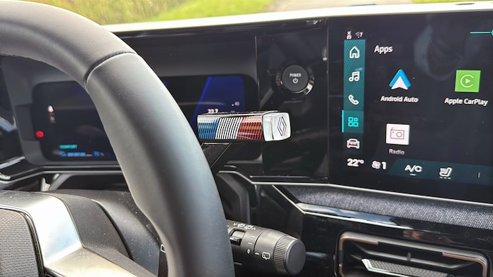 Das Cockpit kennt man im Wesentlichen vom R5 und von der Anmutung her von allen anderen neueren Renaults. Die emotionale Verbindung zum Urahnen kommt im Testwagen von den Sitzbezügen aus Jeansstoff und dem ebenfalls damit gepolsterten Armaturenbrett. Wenig charmant sind die drei Lenkstockhebel rechts am Lenkrad – zu viel des Guten.