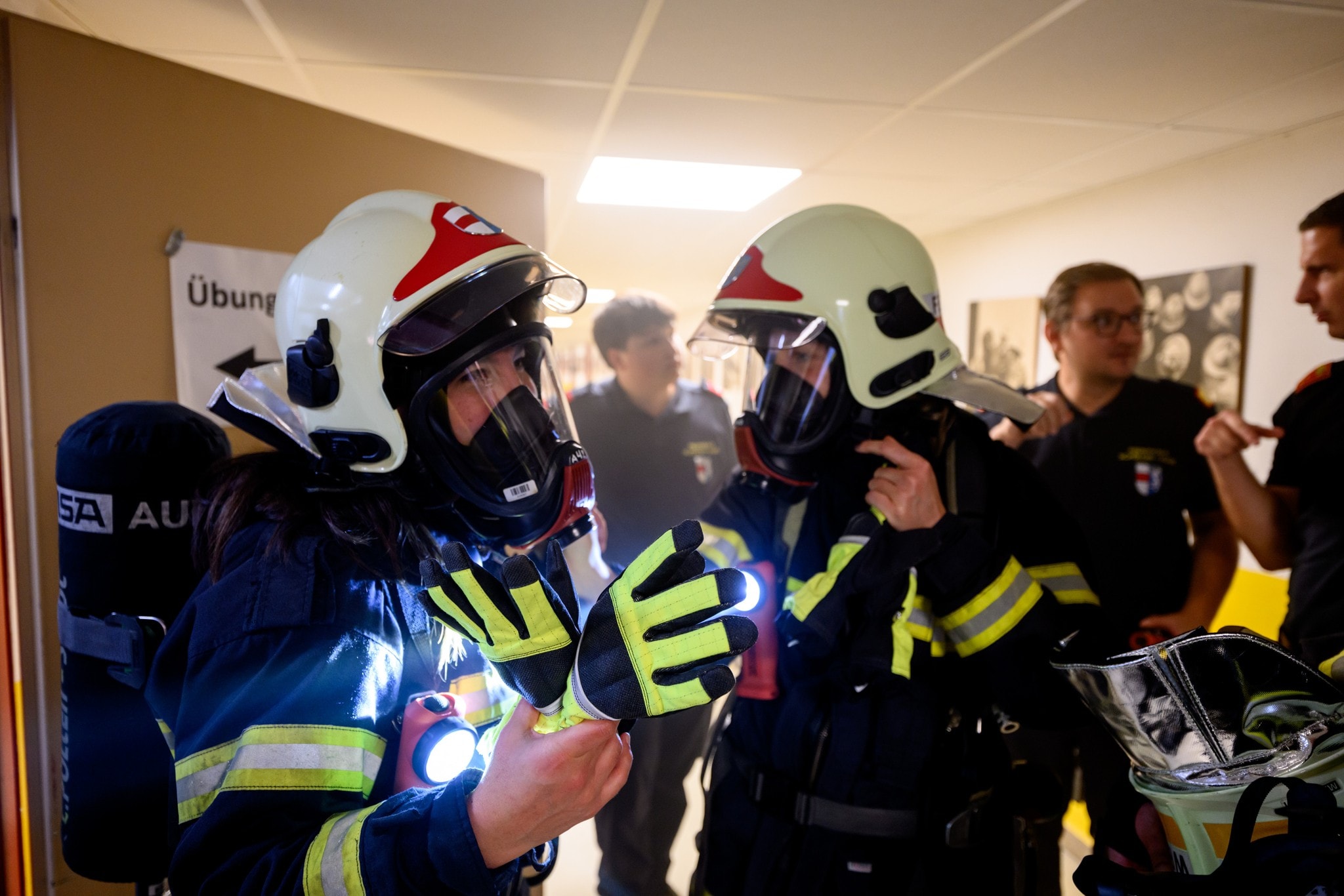 „Atemluft geschnuppert“ haben zwölf Moderatoren von Radio NÖ gemeinsam mit der „Krone“ bei der Feuerwehr St. Pölten. Mit der Atemschutzausrüstung „in voller Montur“ musste der Brandparkour, der sich im Keller des Feuerwehrhauses befindet, durchquert werden.