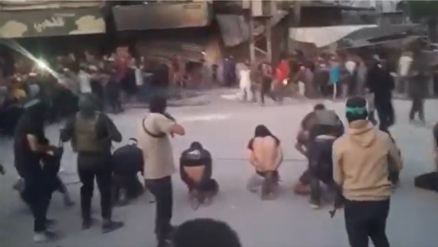 Im Netz kursieren Videos, die eine Gruppen-Erschießung von acht Personen durch Hamas-Kämpfer auf einem Platz südlich von der Stadt Gaza zeigen sollen. Umringt ist der Platz von einer Menge Schaulustiger. Nachdem die Schüsse fallen und die Körper der Exekutierten leblos zu Boden sinken, setzen laute „Allahu akbar“-Rufe ein. Die Hamas-Kämpfer strecken die Hände in die Luft und feuern Salven gen Himmel. Augenzeugen sagten der Deutschen Presse-Agentur telefonisch, die Hamas habe den Getöteten vorgeworfen, Kollaborateure der israelischen Armee zu sein.