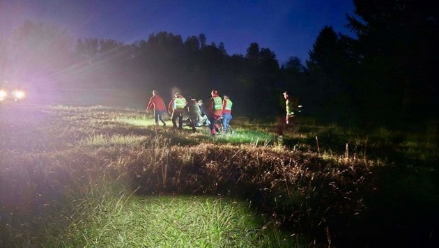 Sofort machen sich zehn Kameraden auf den Weg – und zwar zu Fuß: „Wir mussten 300 Meter über nasses Wiesengelände und bedanken uns herzlich bei dem örtlichen Landwirt, der uns innerhalb weniger Minuten Gummistiefel für die gesamte Mannschaft organisierte“, schildert die Bergrettung Klagenfurt. Mit der Ausrüstung, ohne die der Einsatz im tiefen Morast wohl nicht möglich gewesen wäre, machen sich die Bergretter zu der hilflosen Person auf.