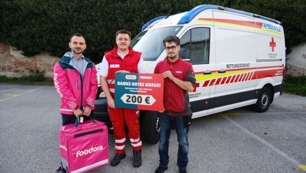 Anlass für die Aktion war der Lieferstart von PENNY und foodora in Wiener Neustadt. Als Zeichen der Anerkennung überreichten die beiden Partner dem Team des Roten Kreuzes einen 200-Euro-Gutschein – als Beitrag für das nächste Mannschaftsfest oder eine wohlverdiente Stärkung nach einem langen Einsatz.