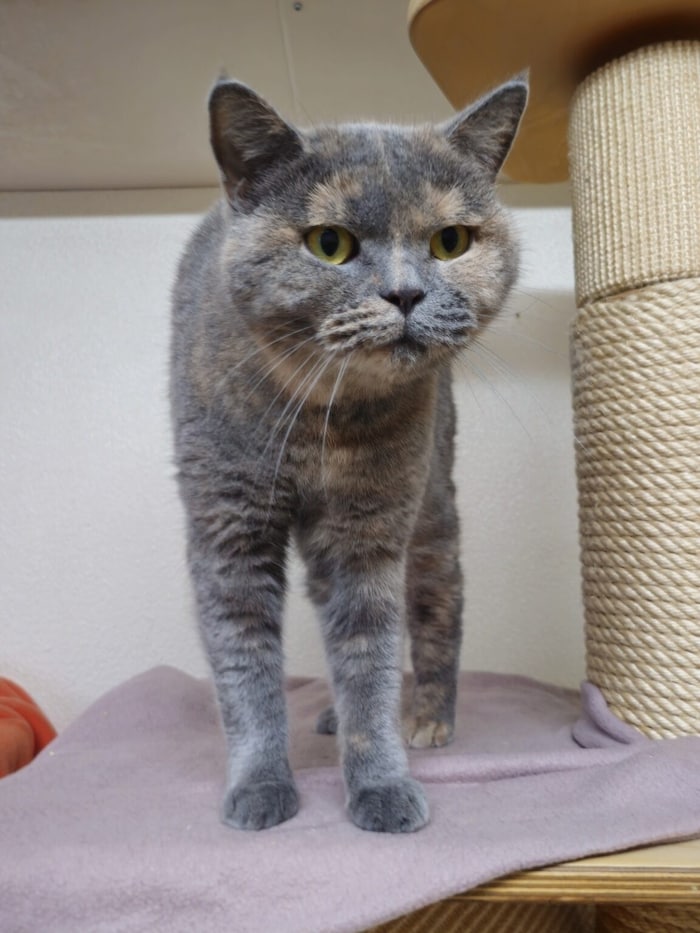 Die zweijährige British-Kurzhaar-Katze Giesela (Bild) wurde als Fundtier abgegeben. Weil sie niemand vermisst hat, ist sie nun auf Platzsuche bei neuen Besitzern. Sie versteht sich ausgezeichnet mit ihrer Freundin Elfriede, weshalb die beiden nur im Doppelpack vermittelt werden. Das charmante Duo ist Wohnungshaltung gewohnt. Tel.: 0732/247887.