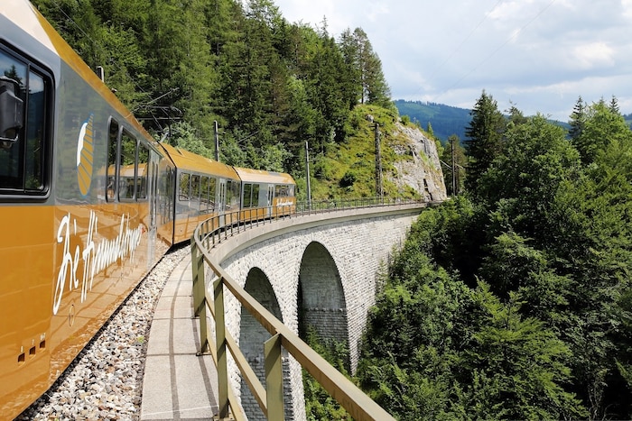 Auf der 84 Kilometer langen traditionsreichen Strecke der Mariazellerbahn verkehren neben den modernen Himmelstreppengarnituren auch die exklusiven Panoramawagen, der Familienerlebniszug Ötscherbär sowie der nostalgische Dampfzug.