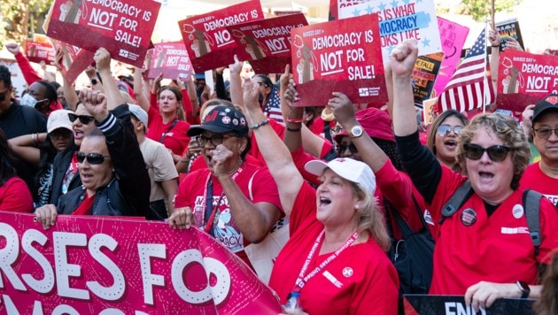 In der US-Hauptstadt Washington, wo Tausende auf die Straße gingen, sind viele Bundesbedienstete wegen des teilweisen Regierungsstillstands derzeit im Zwangsurlaub oder wurden schon zuvor im Zuge von Kürzungen entlassen. Der Sender CNN zitierte einen Demonstranten mit den Worten, er arbeite seit 20 Jahren im öffentlichen Dienst – und die Trump-Regierung sei im Begriff, diesen zu zerstören.